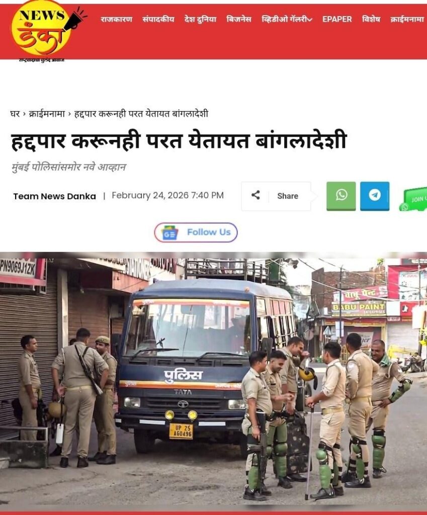 शिवाय १ भारतीय रुपया बांगलादेशात त्यांच्या चलनात १.२५ टका (बांगलादेशी रुपया) होतो. म्हणजे आपण ज्याला “स्वस्त मजुरी” समजतो त्यातही बांगलादेशी घुसखोर आनंदी असतो. कारण मोदी सरकारच्या तसेच राज्य सरकारच्या सगळ्या योजनांचा लाभ मिळवून कनवटीला बांधलेल्या त्याच्या भारतातील १०० रुपयांच्या शिलकीचे बांगलादेशात १२५ टका होतात. मग हद्दपार केल्यावर तो परत का येणार नाही…?