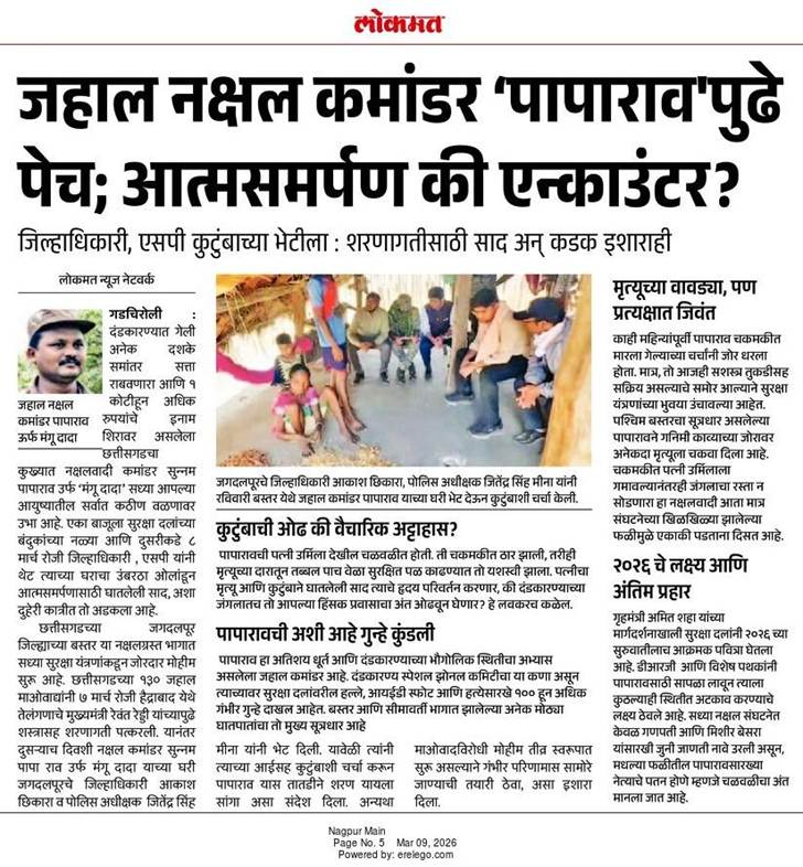 नुकतेच तेलंगणामध्ये छत्तीसगडमधील तब्बल १२७ नक्षलवाद्यांनी एकाच वेळी आत्मसमर्पण करून मुख्य प्रवाहात सामील होण्याचा निर्णय घेतला. या ऐतिहासिक घटनेमुळे नक्षली चळवळीला आणखी एक मोठा हादरा बसला असून, याच धर्तीवर आता पापारावनेही शस्त्रे खाली टाकावीत, यासाठी पोलीस आणि महसूल प्रशासनाने थेट त्याच्या घराचा उंबरठा ओलांडला. सुकमा जिल्ह्याचे जिल्हाधिकारी आणि पोलीस अधीक्षकांनी स्वतः पापारावच्या गावी जाऊन त्याच्या कुटुंबीयांची भेट घेतली. “पापारावला सांगा, आता हिंसाचाराचा मार्ग संपला आहे. त्याच्या १२७ सहकाऱ्यांनी घेतलेला मार्ग स्वीकारा आणि शरणागती पत्करा,” असे आवाहन प्रशासनाने त्याच्या नातेवाईकांमार्फत केले आहे.
