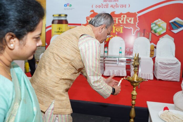 प्रदर्शनाचे उद्घाटन मंडळाचे सभापती रवींद्र साठे यांच्या हस्ते करण्यात आले. मंडळाच्या मुख्य कार्यकारी अधिकारी गीतांजली बाविस्कर यांची कार्यक्रमात प्रमुख उपस्थिती होती. स्वदेशी वस्तूंचा वापर वाढविणे हे आत्मनिर्भर भारताच्या दिशेने एक महत्त्वाचे पाऊल आहे. ग्रामीण भागातील कारागीर, उद्योजक आणि महिला स्वयंसहायता गटांना व्यासपीठ मिळावे, बाजारपेठ मिळावी यासाठी मंडळ सातत्याने प्रयत्नशील आहे, असे साठे यांनी सांगितले.