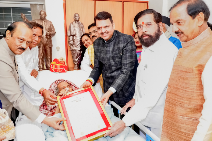 शिल्पकार राम सुतार यांना ‘महाराष्ट्र भूषण’ पुरस्कार प्रदान; फडणवीस, शिंदे आणि पवारांकडून गौरव!