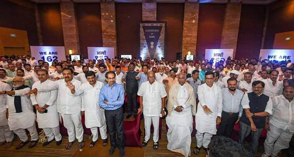 शिवसेनेचे ५६… राष्ट्रवादीचे ५४… आणि काँग्रेसचे ४४ आमदार… शिवाय कम्युनिस्ट आणि अपक्ष आमदारांचा पाठिंबा… म्हणजे बहुमताच्या १४४ आकड्याच्या पार आम्ही सहज जात होतो… पण मतदारांनी कौल तर महायुतीला दिलेला आहे… काँग्रेस आणि राष्ट्रवादीला विरोधी पक्षात बसण्याचा कौल जनतेने दिला होता…